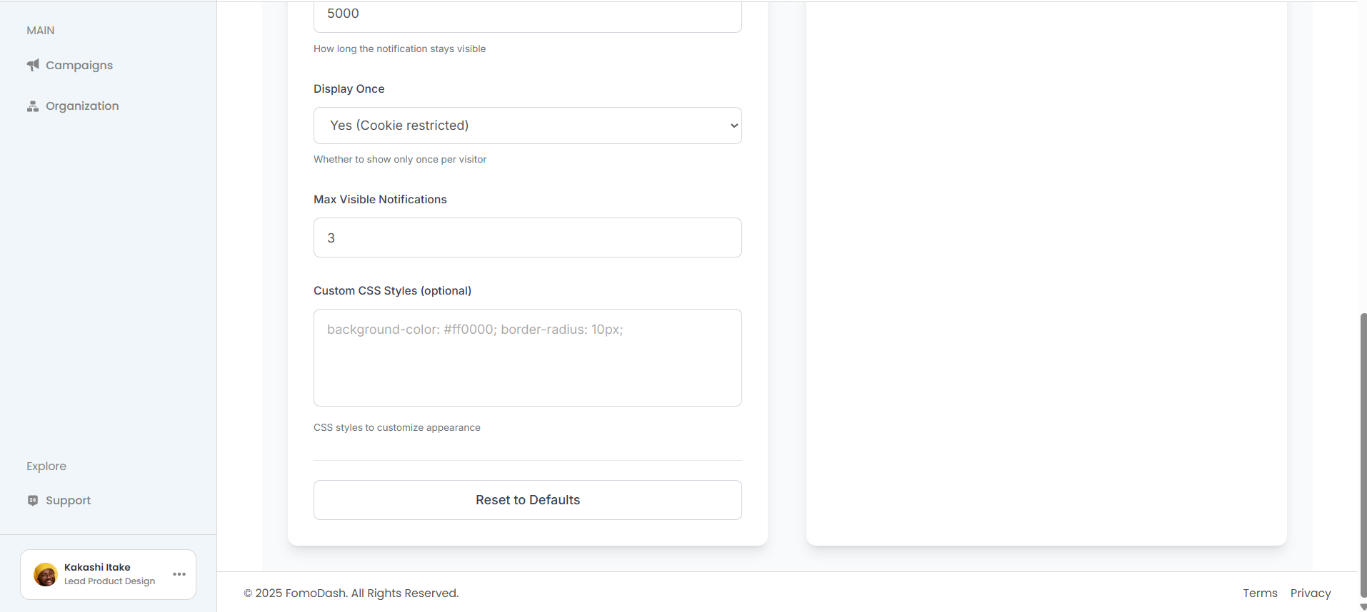 Invite team members, assign roles, and co-manage campaigns in real time. Customize your organization’s theme to keep every FOMO element on-brand.