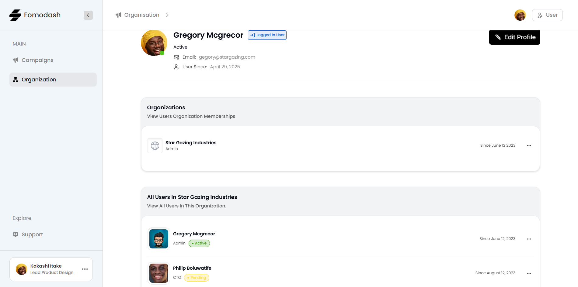 Manage Organisation